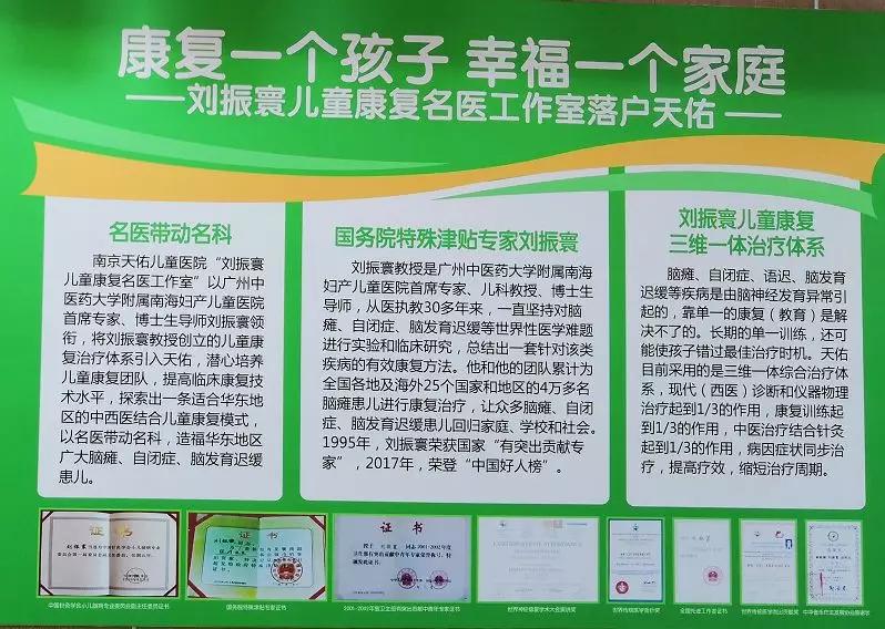 “三维一体”儿童康复治疗体系治疗脑部发育迟缓是南京天佑儿童医院的特色诊疗项目,这套由国务院特殊津贴专家、广州中医药大学附属南海妇产儿童医院首席专家、博士生导师刘振寰教授创立的治疗体系的独特疗效,在天天身上再次得到印证。